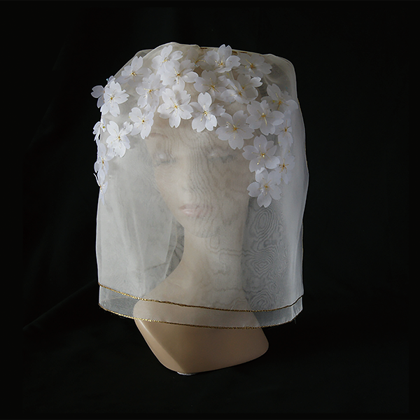 額の広範囲に桜の花をちりばめています。髪の悩みや老いた顔を